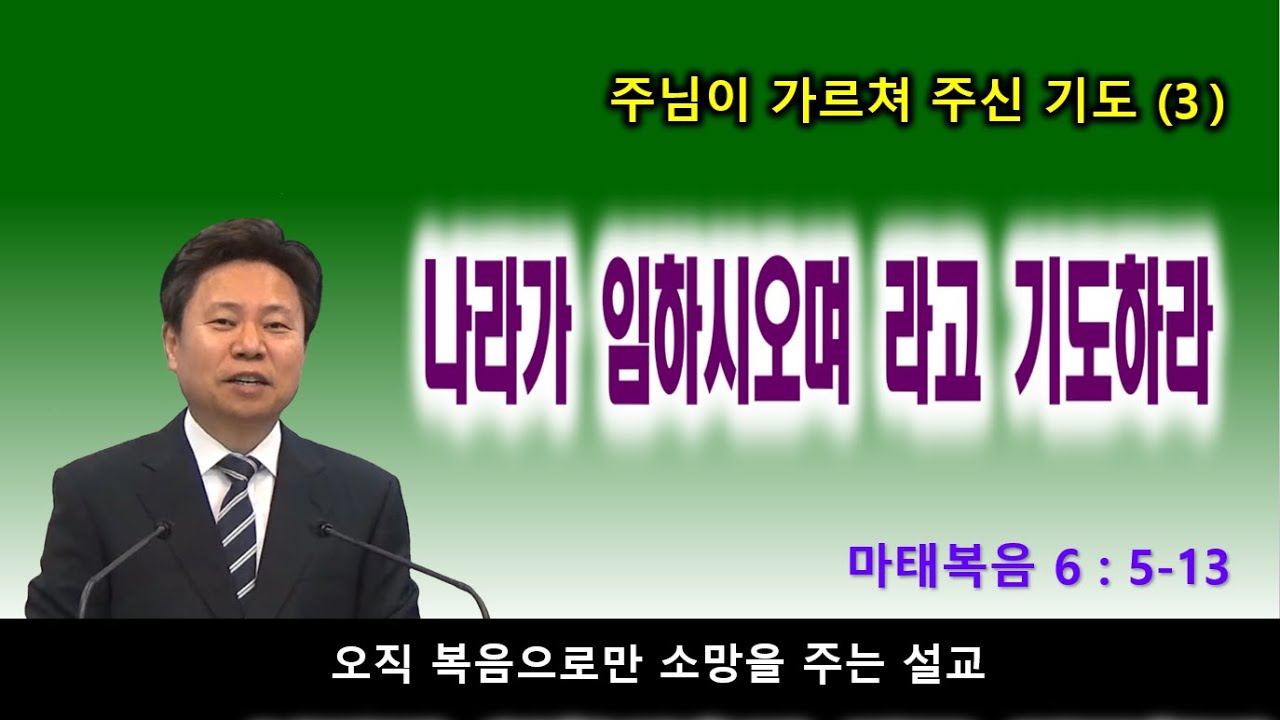 [성경본문] 마태복음6:5-13절 개역개정5. 또 너희는 기도할 때에 외식하는 자와 같이 하지 말라 그들은 사람에게 보이려고 회당과 큰 거리 어귀에 서서 기도하기를 좋아하 6. 너는 기도할 때에 네 골방에 들어가 문을 닫고 은밀한 중에 계신 네 아버지께 기도하라 은밀한 중에 보시는 네 아버지께서 갚으시리라 7. 또 기도할 때에 이방인과 같이 중언부언하지 말라 그들은 말을 많이 하여야 들으실 줄 생각하느니라 8. 그러므로 그들을 본받지 말라 구하기 전에 너희에게 있어야 할 것을 하나님 너희 아버지께서 아시느니라 9. 그러므로 너희는 이렇게 기도하라 하늘에 계신 우리 아버지여 이름이 거룩히 여김을 받으시오며 10. 나라가 임하시오며 뜻이 하늘에서 이루어진 것 같이 땅에서도 이루어지이다 11. 오늘 우리에게 일용할 양식을 주시옵고 12. 우리가 우리에게 죄 지은 자를 사하여 준 것 같이 우리 죄를 사하여 주시옵고 13. 우리를 시험에 들게 하지 마시옵고 다만 악에서 구하시옵소서 (나라와 권세와 영광이 아버지께 영원히 있사옵나이다 아멘