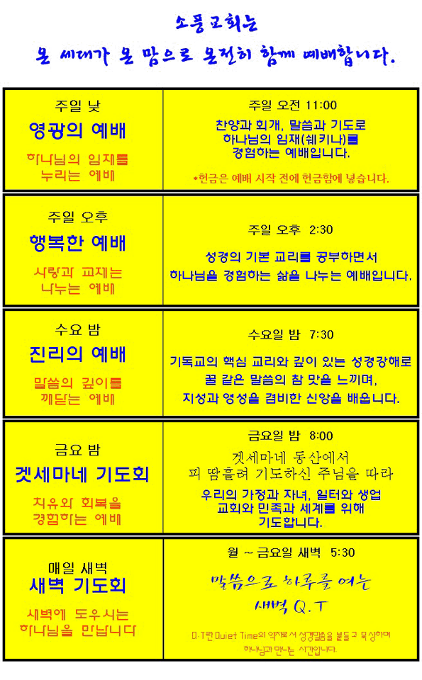 예배시간 안내